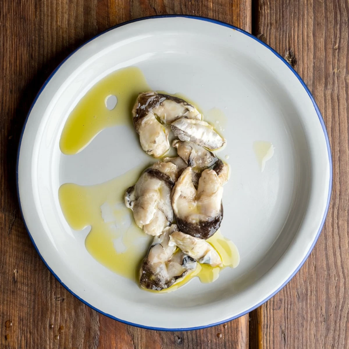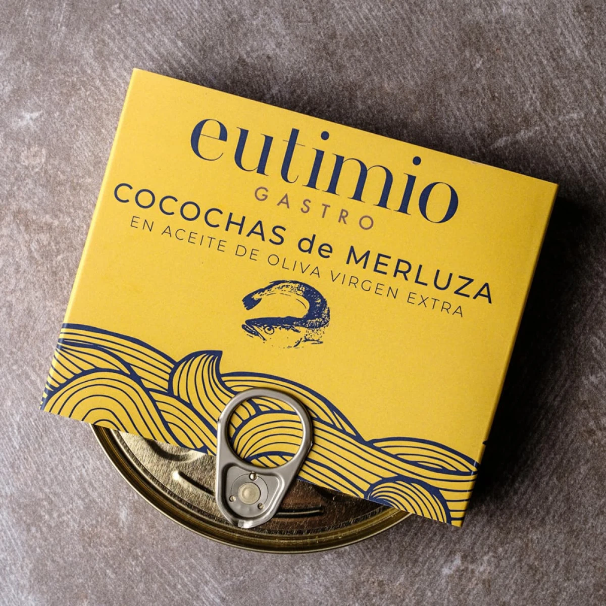 La cococha es la parte más jugosa y gelatinosa de la merluza. Este entrante gourmet de la gama Eutimio Gastro Selección, es confitado a baja temperatura en Aceite de Oliva Virgen Extra (AOVE) con láminas de ajo y un toque sutil de guindilla. El resultado es una textura melosa que se deshace en la boca.