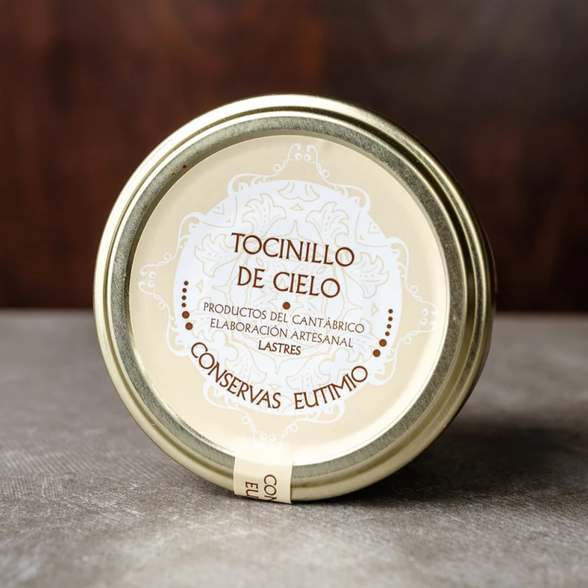 En Conservas Eutimio respetamos escrupulosamente la receta original de tocinillo de cielo artesano. No añadimos gelatinas ni espesantes extraños. Es un postre de yema y almíbar caramelizado, tradicional y cocinado al baño maría con paciencia para conseguir ese color ámbar brillante y esa textura sedosa que se deshace en el paladar sin necesidad de masticar.
